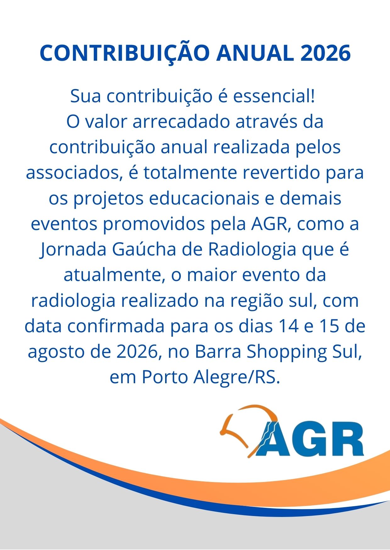 Últimas Notícias CAMPANHA DE CONTRIBUIÇÃO ANUAL 2026 03 de Dezembro de 2025 REVISÃO DE FÍSICA MÉDICA PARA RESIDENTES 27 de Novembro de 2025 33ª JORNADA GAÚCHA DE RADIOLOGIA - Porto Alegre 19 de Novembro de 2025 CLUBE HUGOLINO ANDRADE - Novembro/2025 07 de Novembro de 2025
